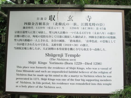 四條金吾頼基公の屋敷跡に建てられた日蓮宗のお寺です。