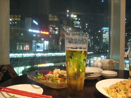 一枚目の写真のビールの向こうに輝いている明かりは「有楽町駅のホーム」